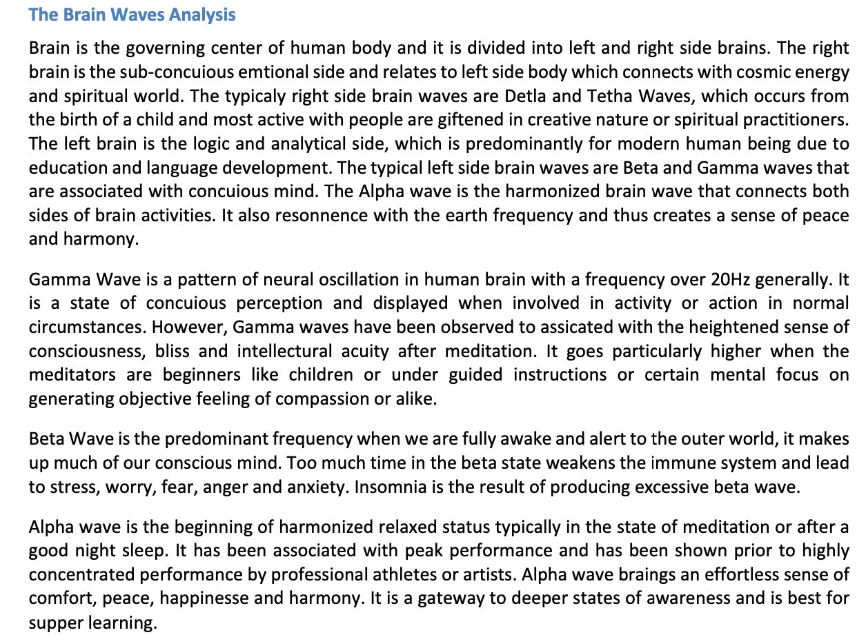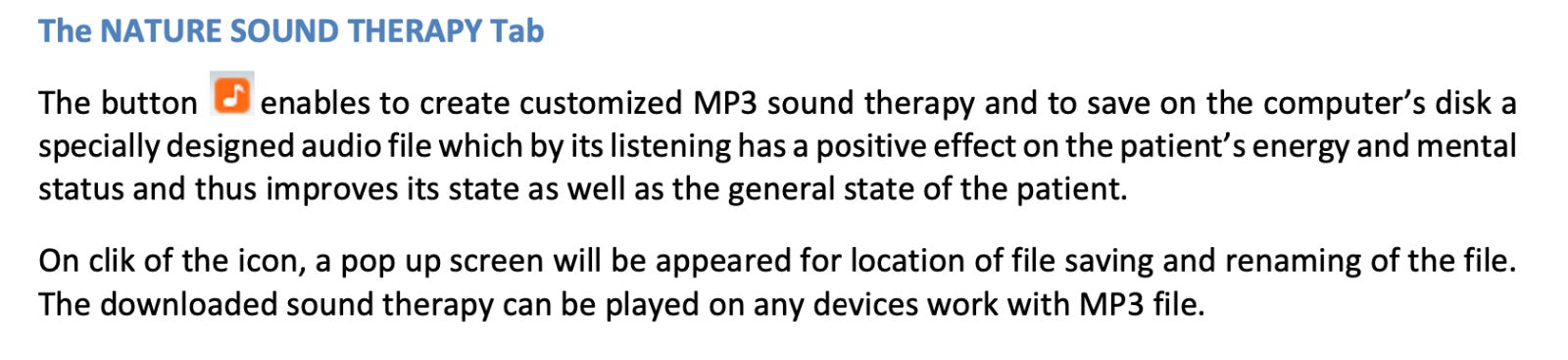 - A customized energy healing composition composed of nature sounds based on bioanalytical research