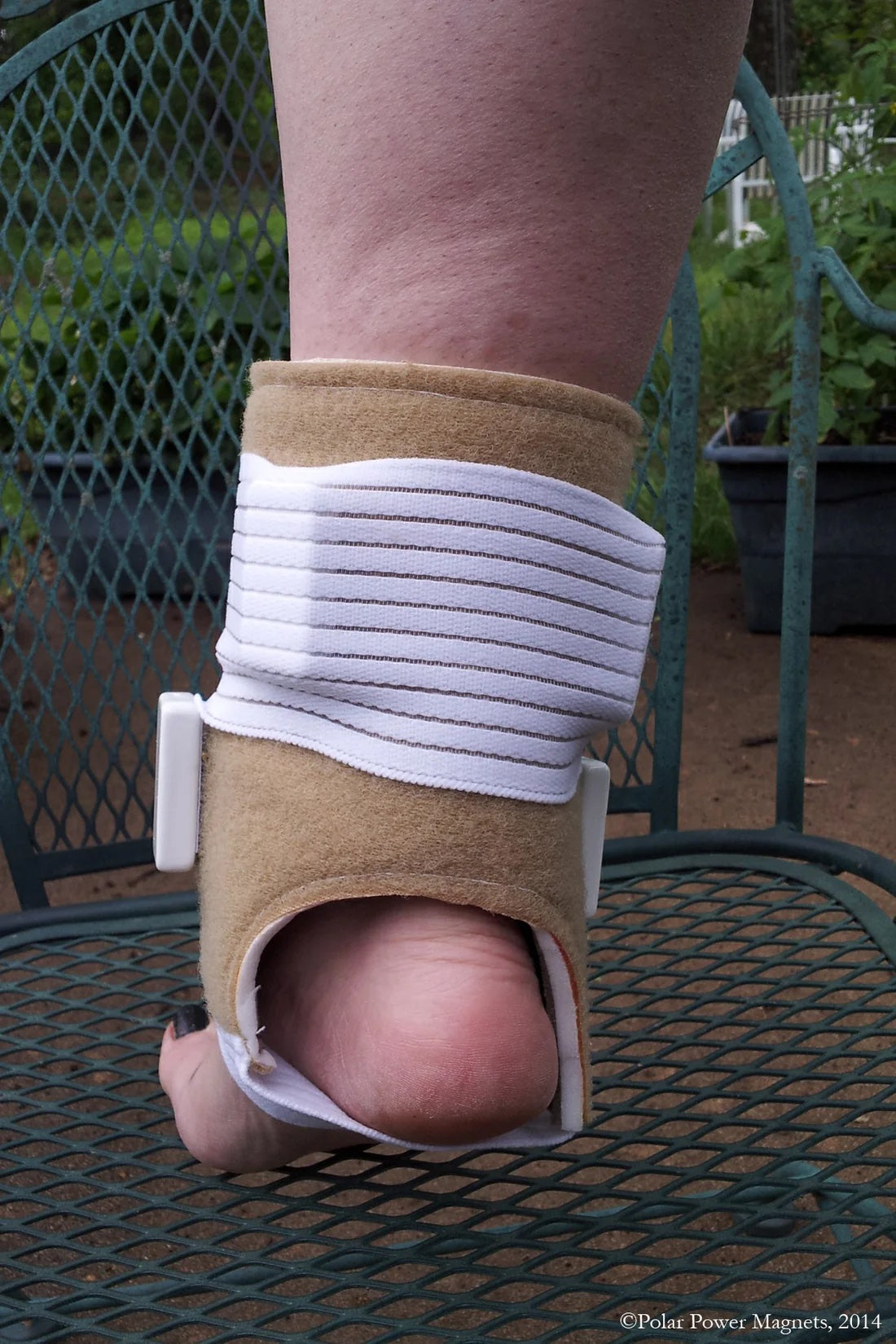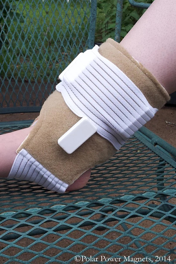 The Polar Power Magnetic Ankle Boot Includes Six Mini-Block bio magnets with male Velcro on the Negative side, and they can attach to the outside of the wrap, which is made of a female velcro-type material. This allows them to be placed wherever deeper penetration is desired...
